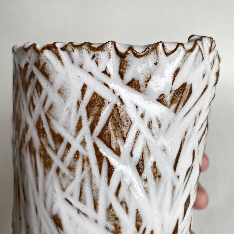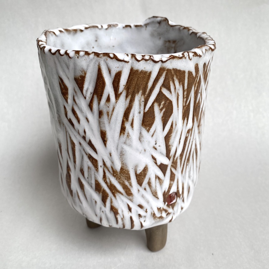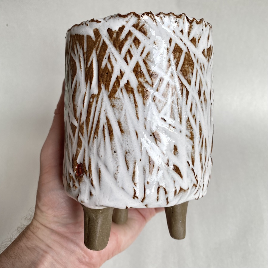 Measures approximately 4″ in diameter and stands a little over 6” tall. Inside potting dimensions are roughly 3-1/2″ by 4″ deep.