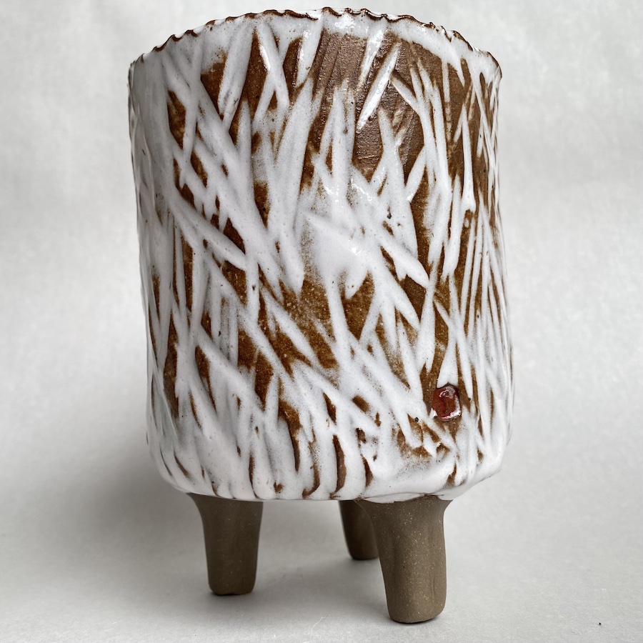 Measures approximately 4″ in diameter and stands a little over 6” tall. Inside potting dimensions are roughly 3-1/2″ by 4″ deep.