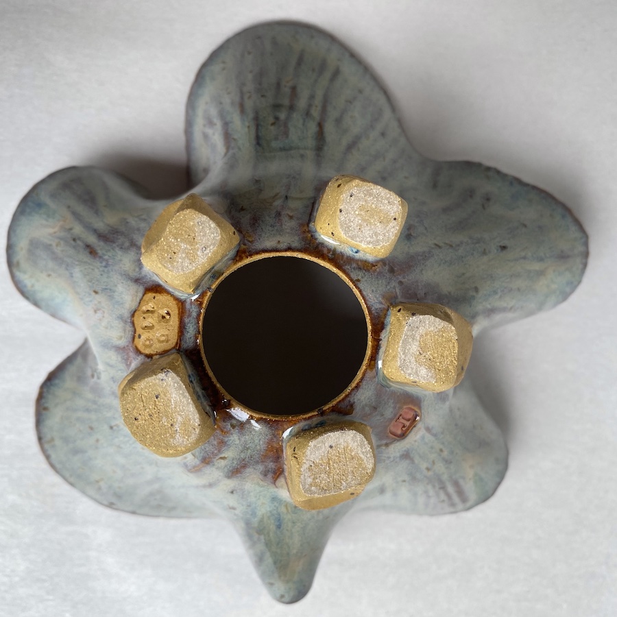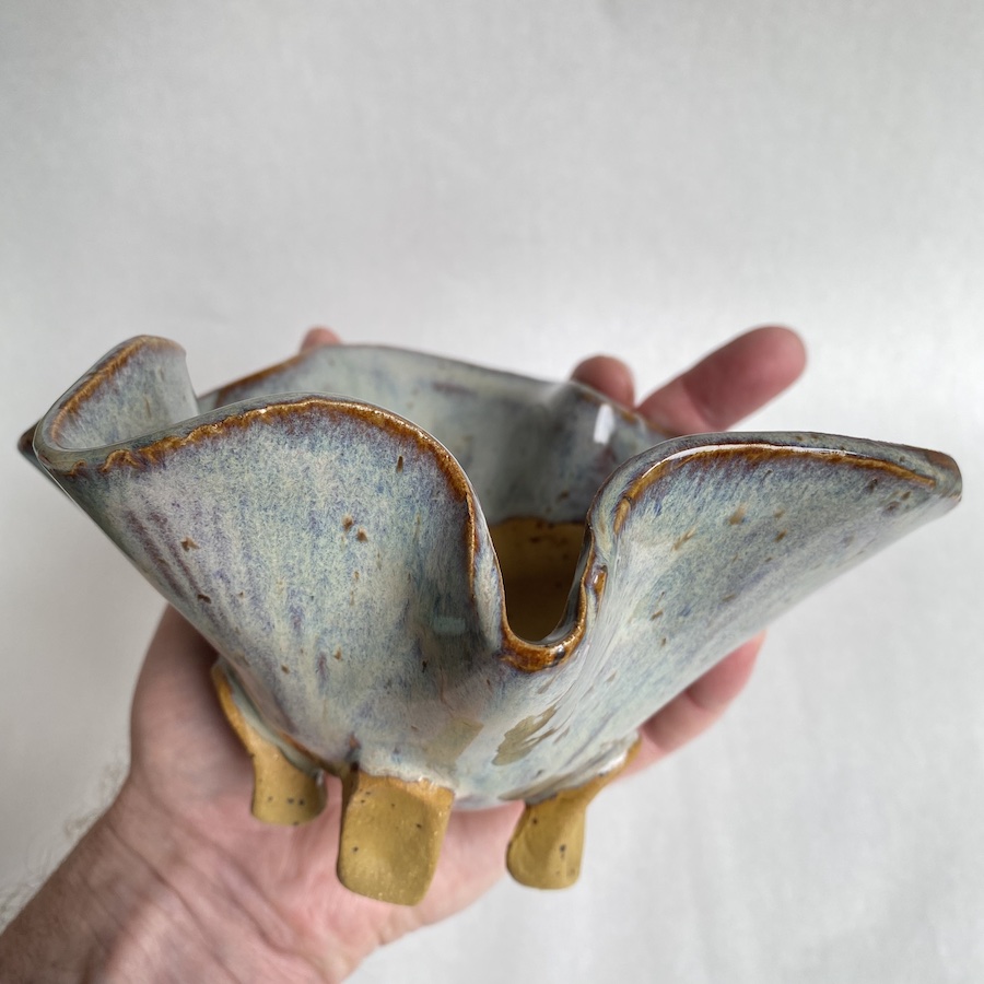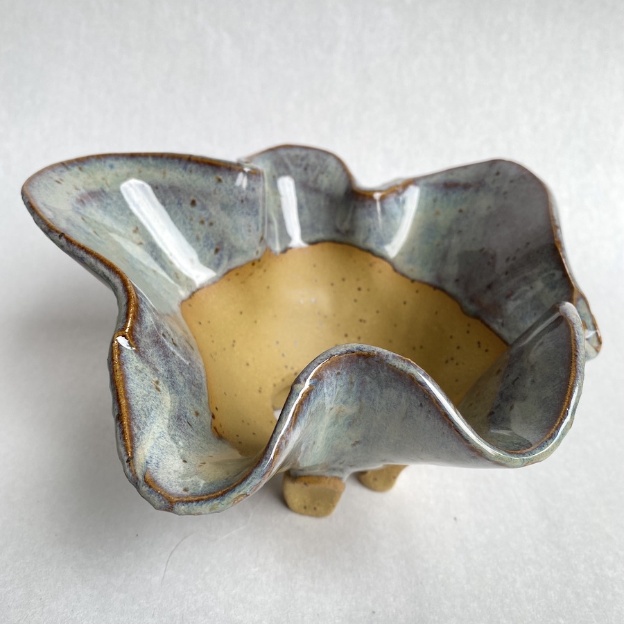 Measures approximately 6” in diameter and stands 4” tall on five chubby feet. Interior potting dimensions roughly 4” round by 2” deep.