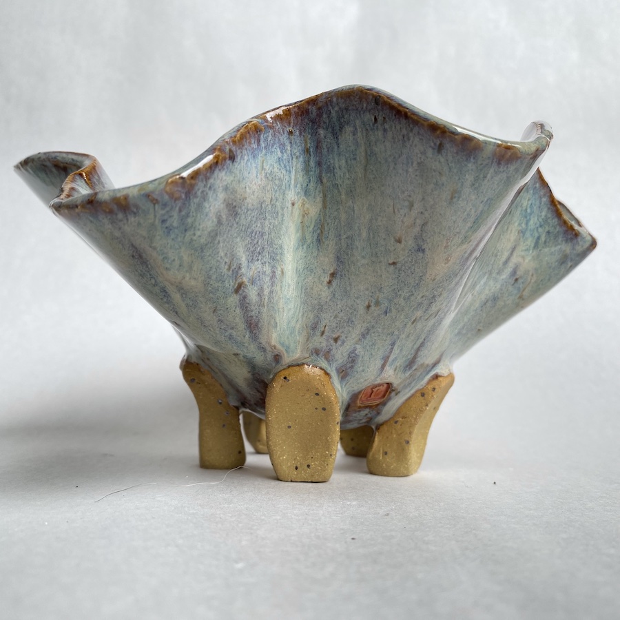 Measures approximately 6” in diameter and stands 4” tall on five chubby feet. Interior potting dimensions roughly 4” round by 2” deep.