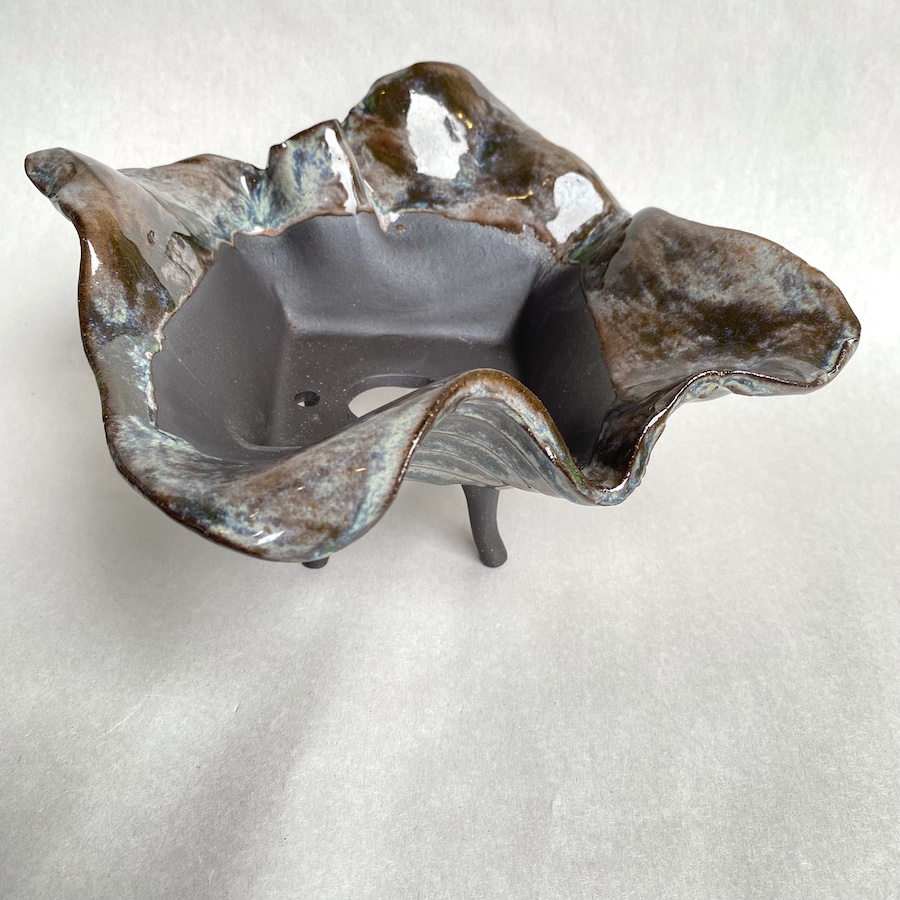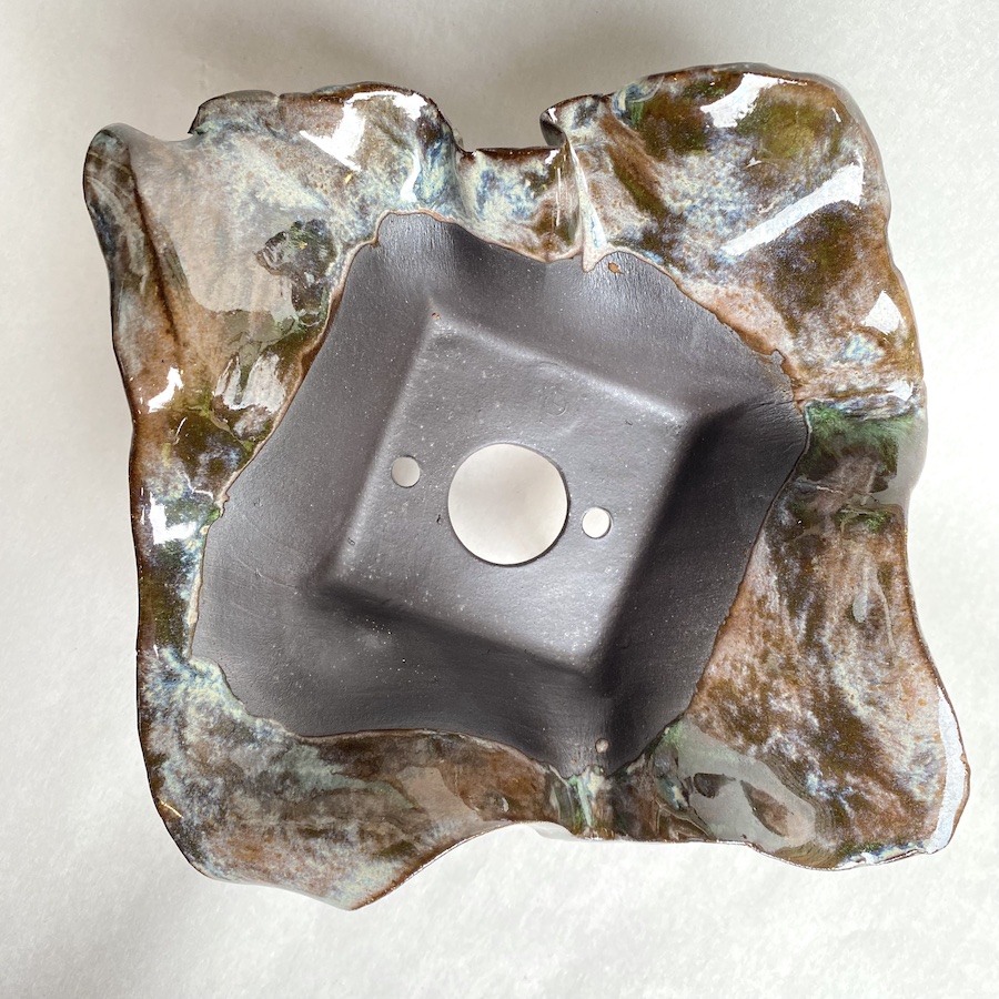 Measures approximately 6“ square by 4“ tall with an inside potting well roughly 4″ square by 1-1/2″ deep.