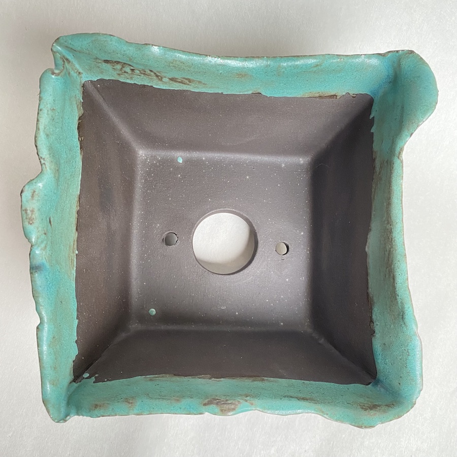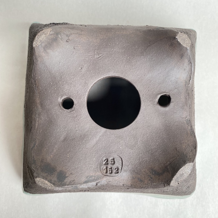 Measures approximately 6” square by 3-1/2” tall. Inside potting area is roughly 5″ square by 2″ deep.