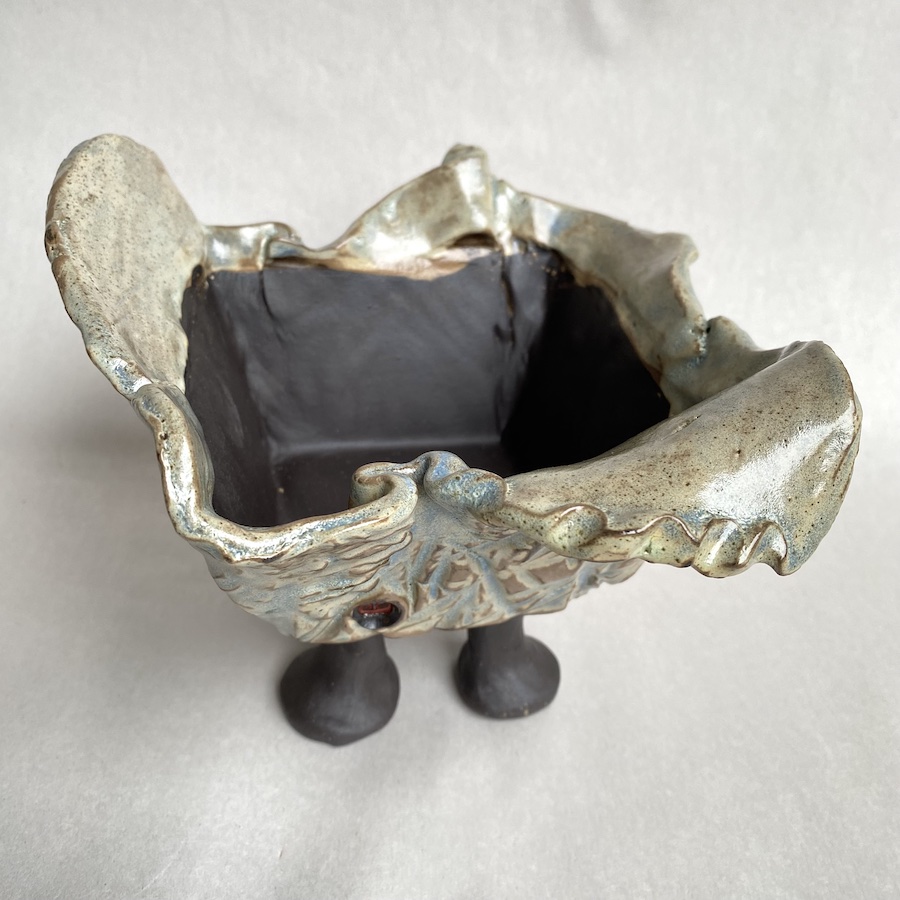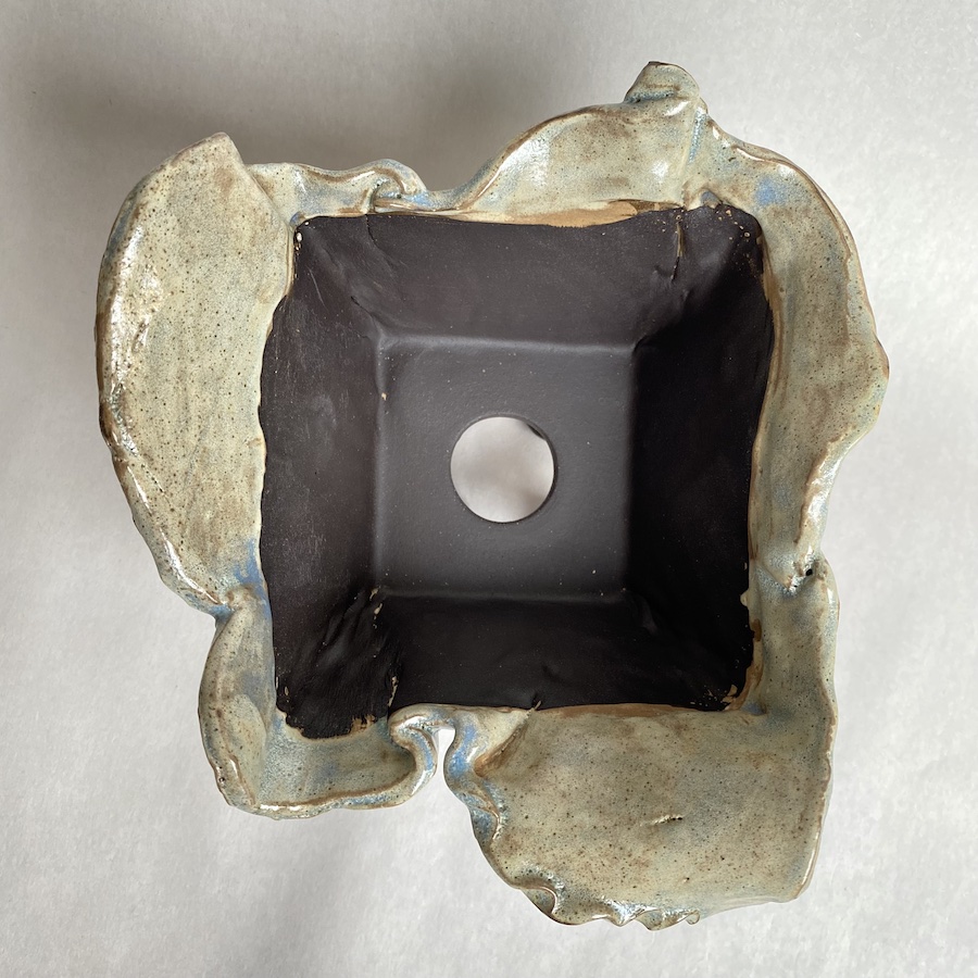 Measures approximately 7“ square and a little over 5“ tall. Inside potting well is roughly 4″ square by 2-1/2″ deep.