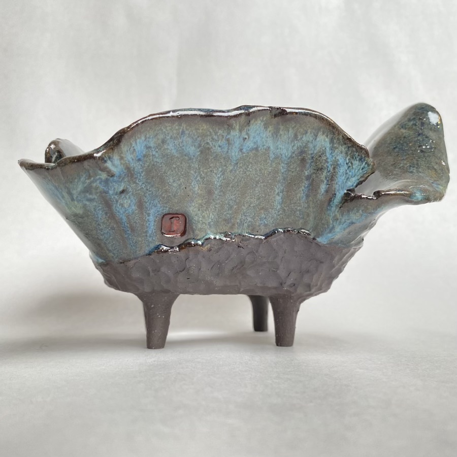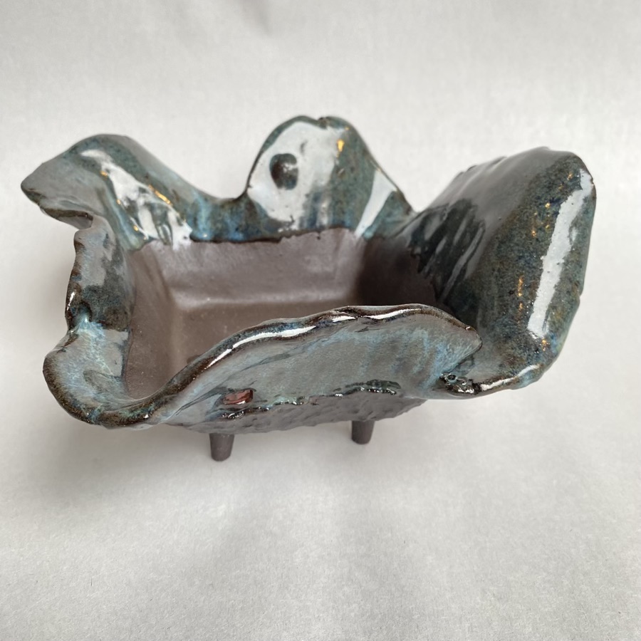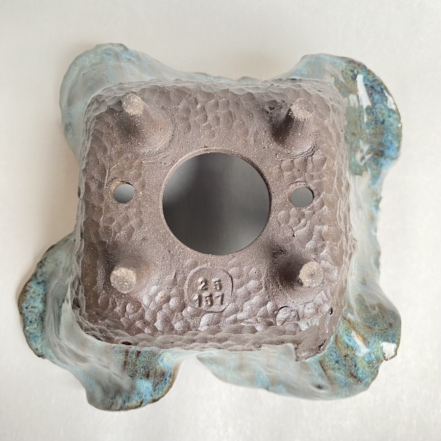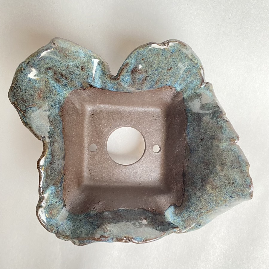 Measures approximately 6” at the widest, by 4” at its tallest. Inside potting well is roughly 4″ square by 1-1/2″ deep.