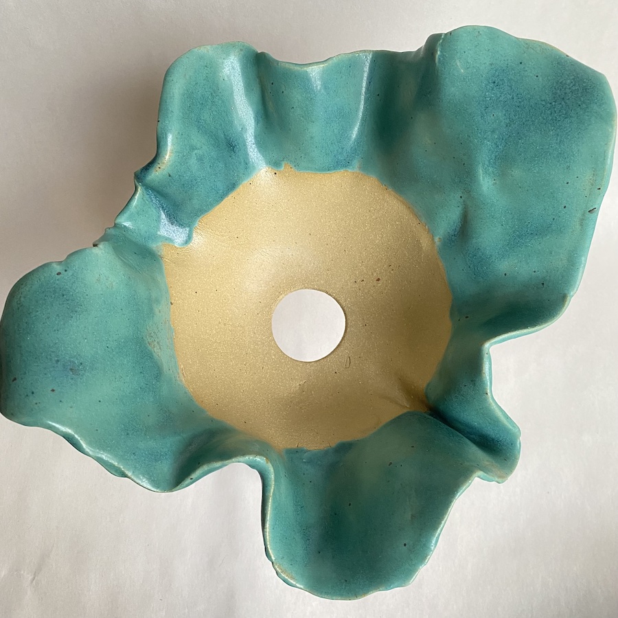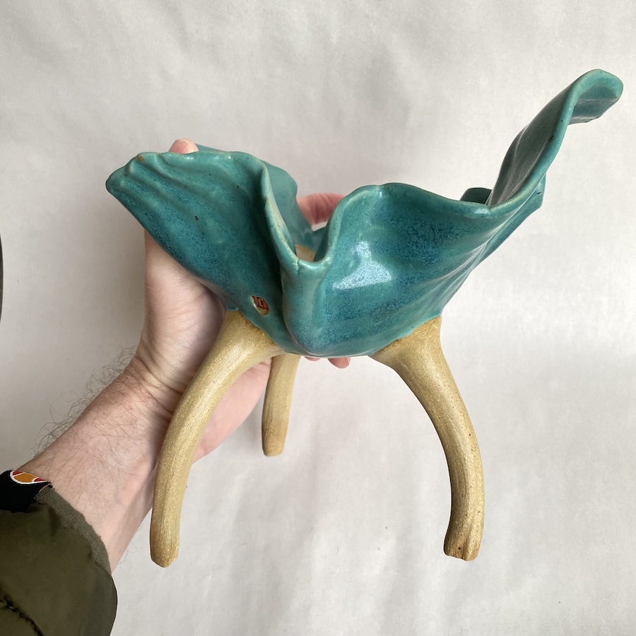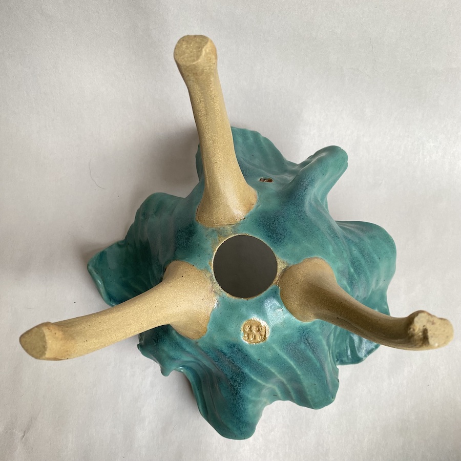 Measures a little over 8” in diameter and 8” tall. Potting areas is roughly 5″ round by 3″ deep.