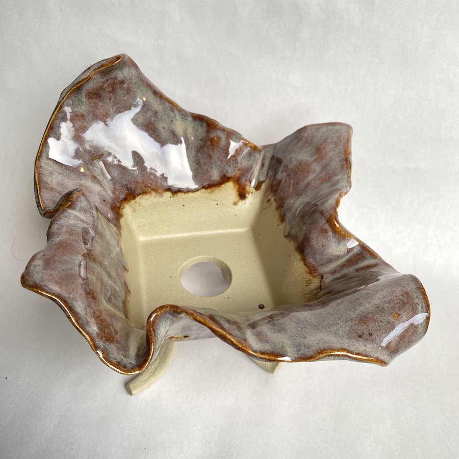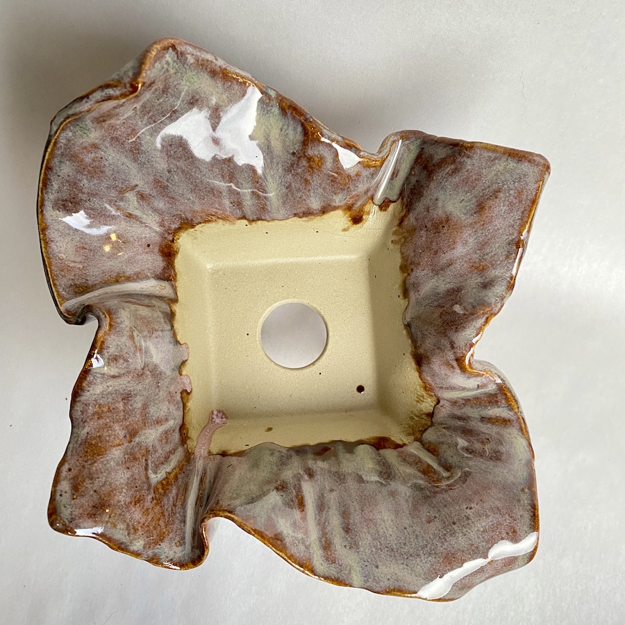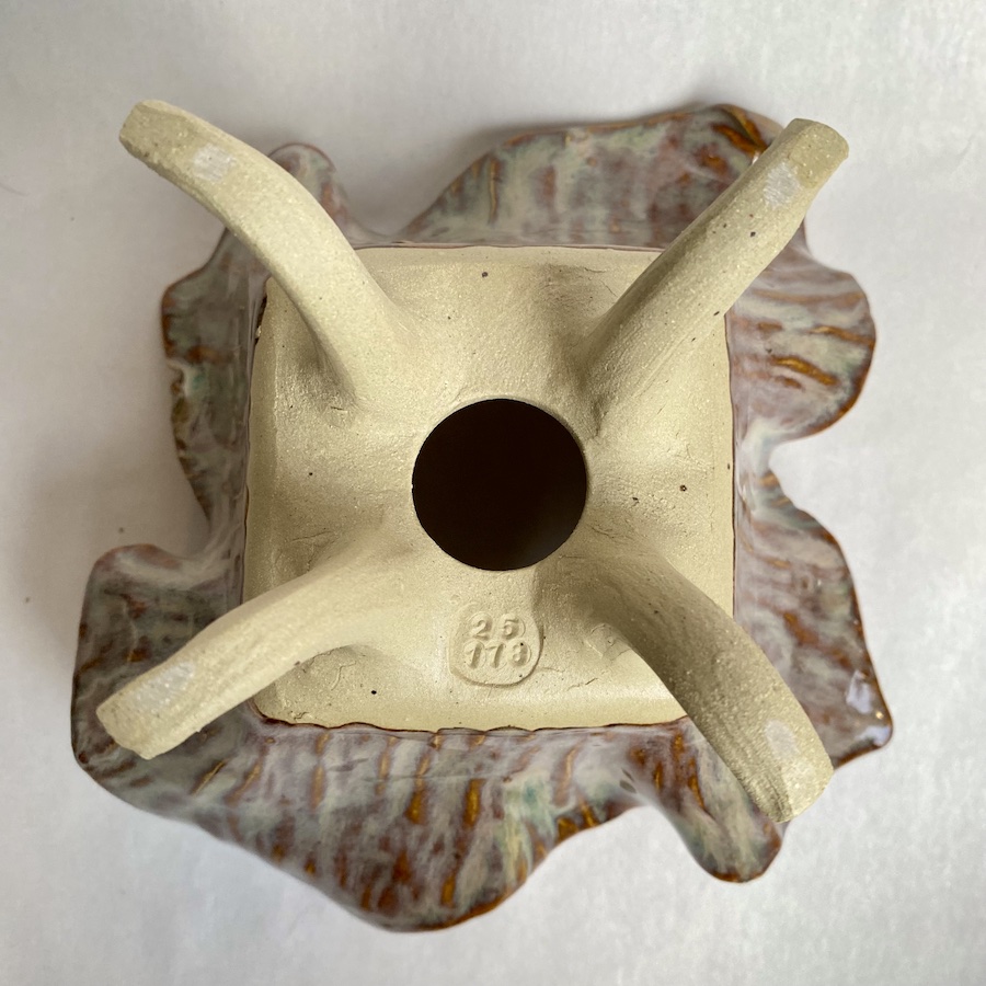 Measuring approximately 7” square and a bit over 5” tall. Inside potting well is roughly 4″ square by 2″ deep.