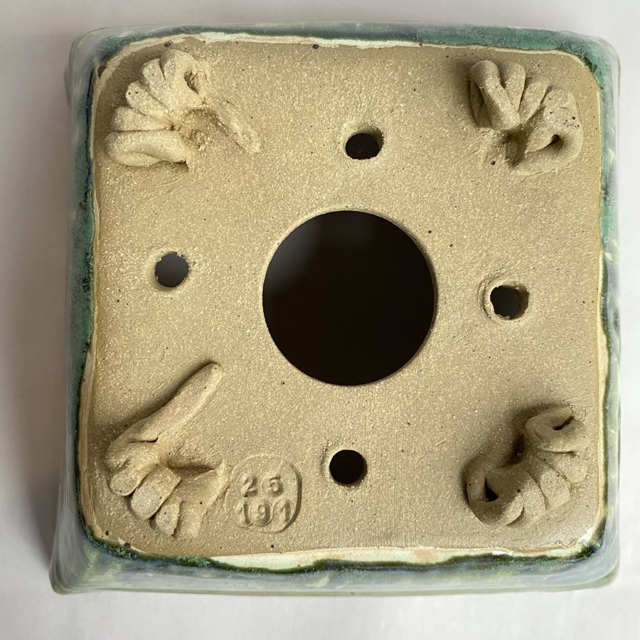 Measures approximately 6” square by 3-1/2″ tall. Inside potting area is roughly 5-1/2″ square by 2-1/2″ deep.