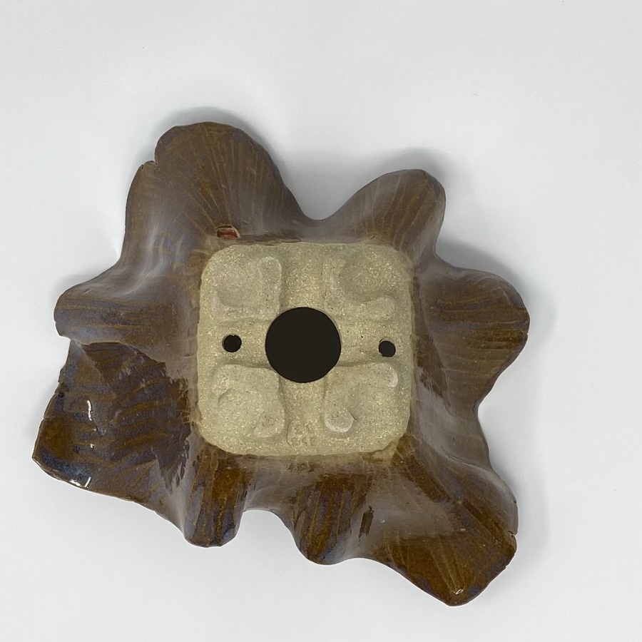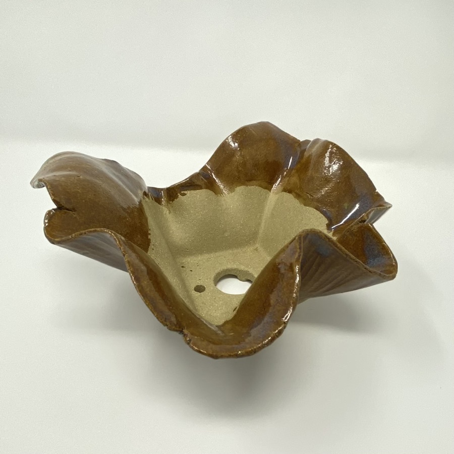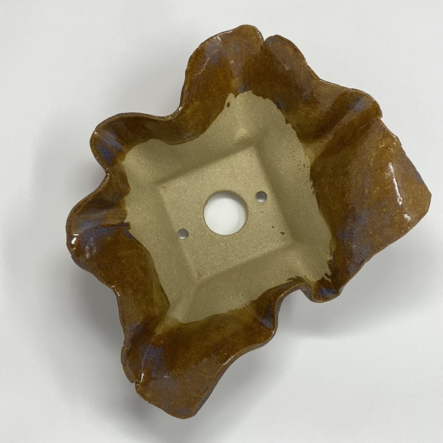 Measures approximately 8” square at it’s widest and roughly 4″ tall at its tallest. Inside potting well is roughly 4″ square by 2″ deep.